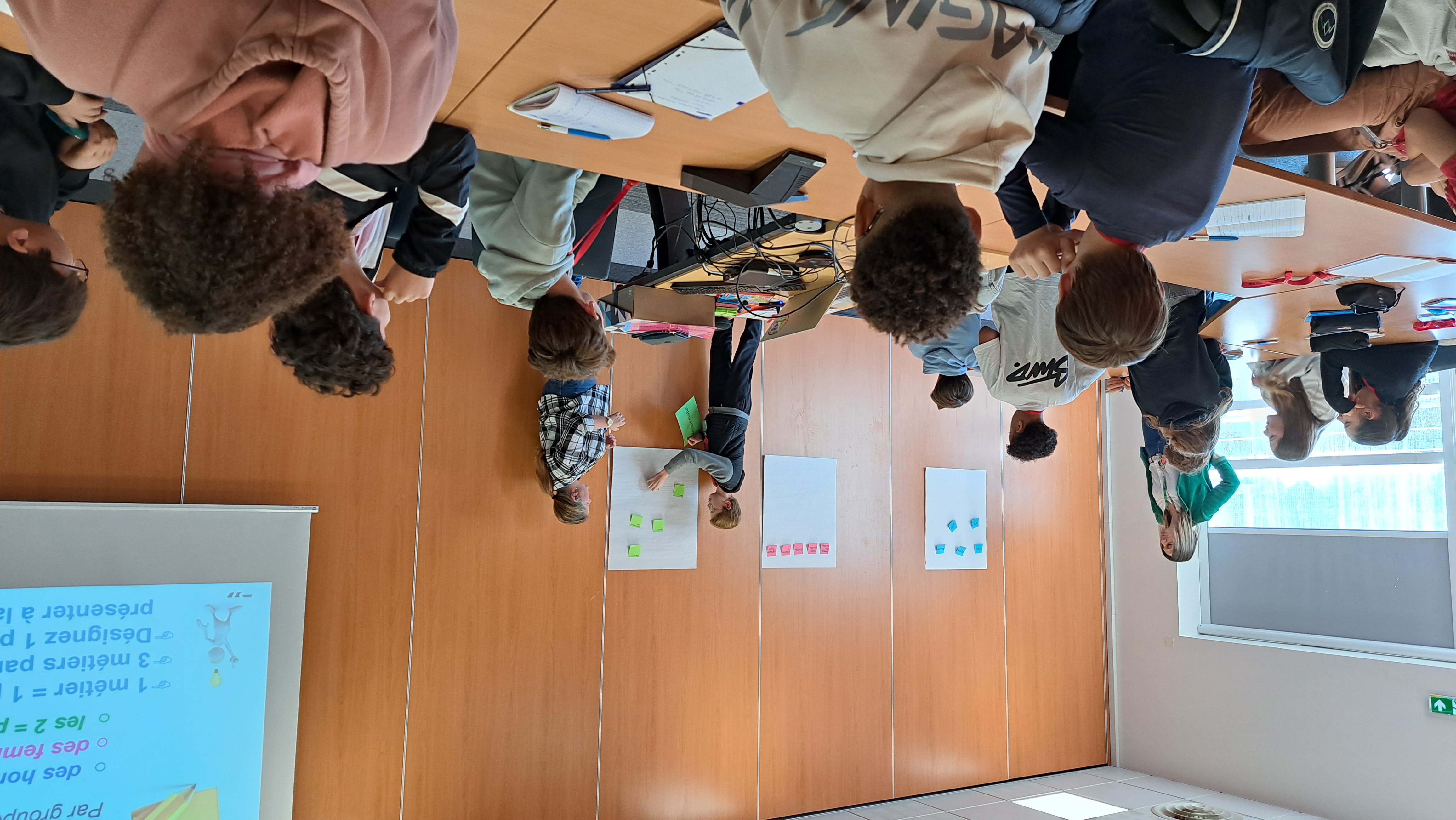 Après une présentation de l'entreprise, ils ont pu réfléchir en ateliers par groupes sur les métiers et certains stéréotypes ( métiers dits typiquement féminins, masculins ou mixtes ), ainsi que sur certains profils professionnels atypiques.